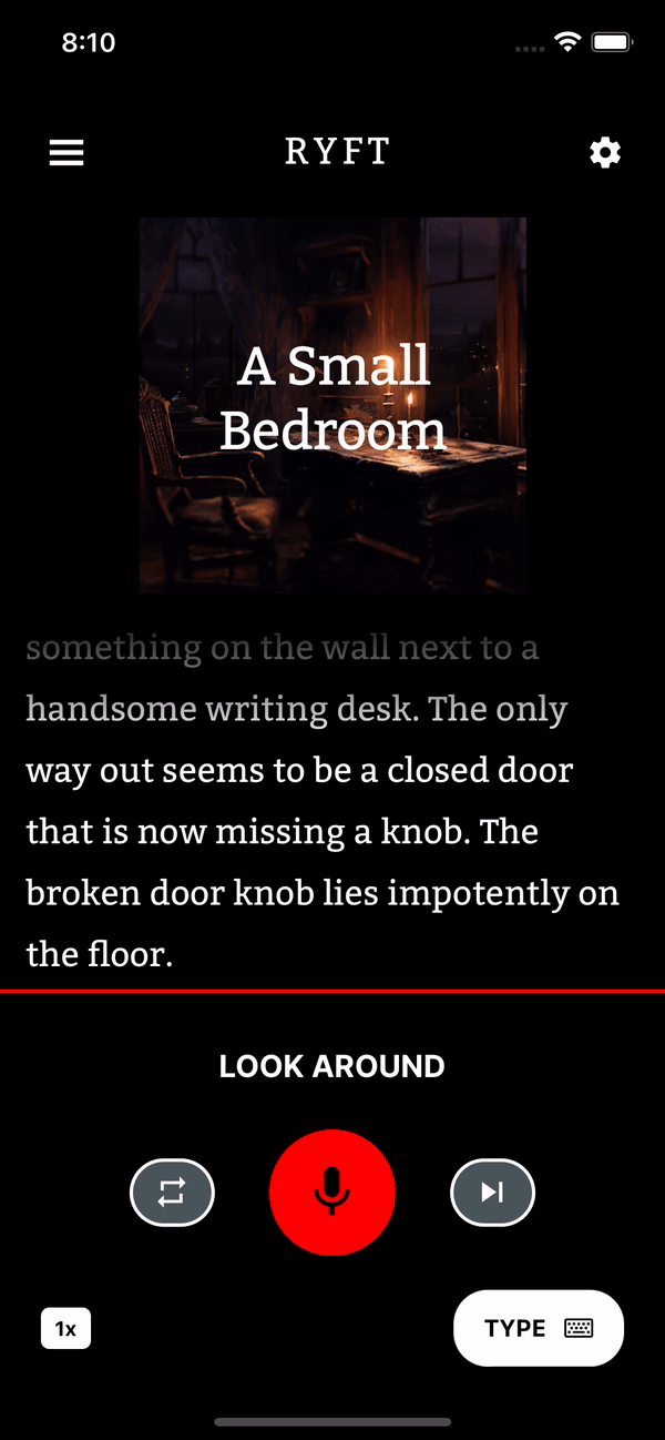 Welcome to the Nexus Manor. A place that exists outside of time —and in between your ears. RYFT is an audio-based adventure game played with speech commands. Featuring a full voice cast, challenging puzzles, and a compelling narrative, this mystery game is powered by the world's greatest graphics engine: your imagination.